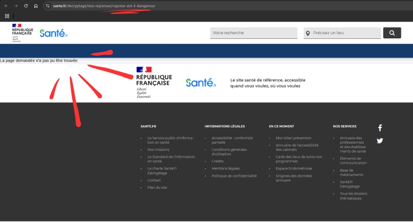 Peut-être bien, puisque la page « Vapoter est-il dangereux » a disparu si rapidement que l’on pourrait douter qu’elle n'ait jamais existée.