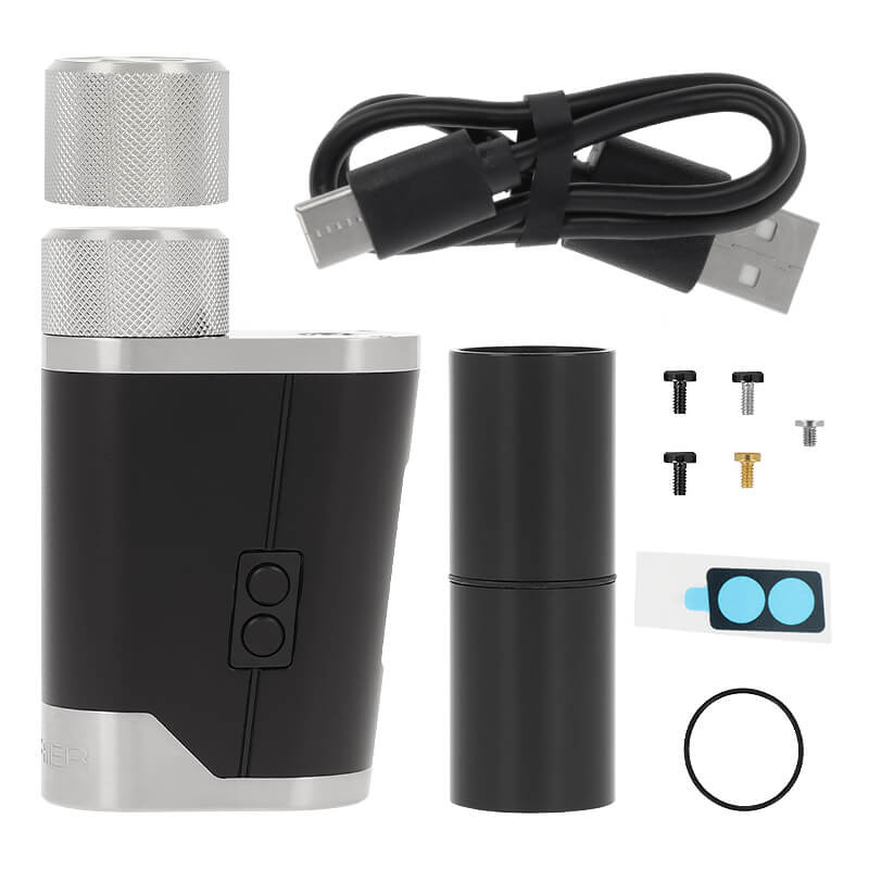 Indeed, this electronic mod only measures 74x45x24.5mm for a 24mm diameter and a 113g weight (without batteries).
