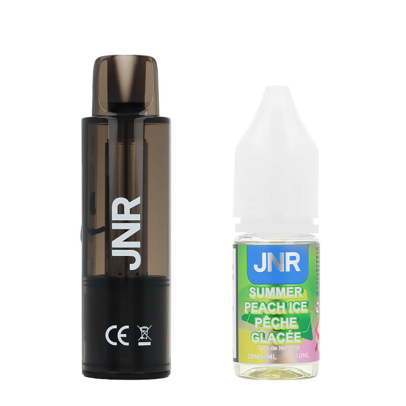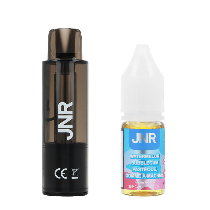 JNR also includes an e-liquid made with nicotine salts (20mg/ml), available in different flavors of your choice.