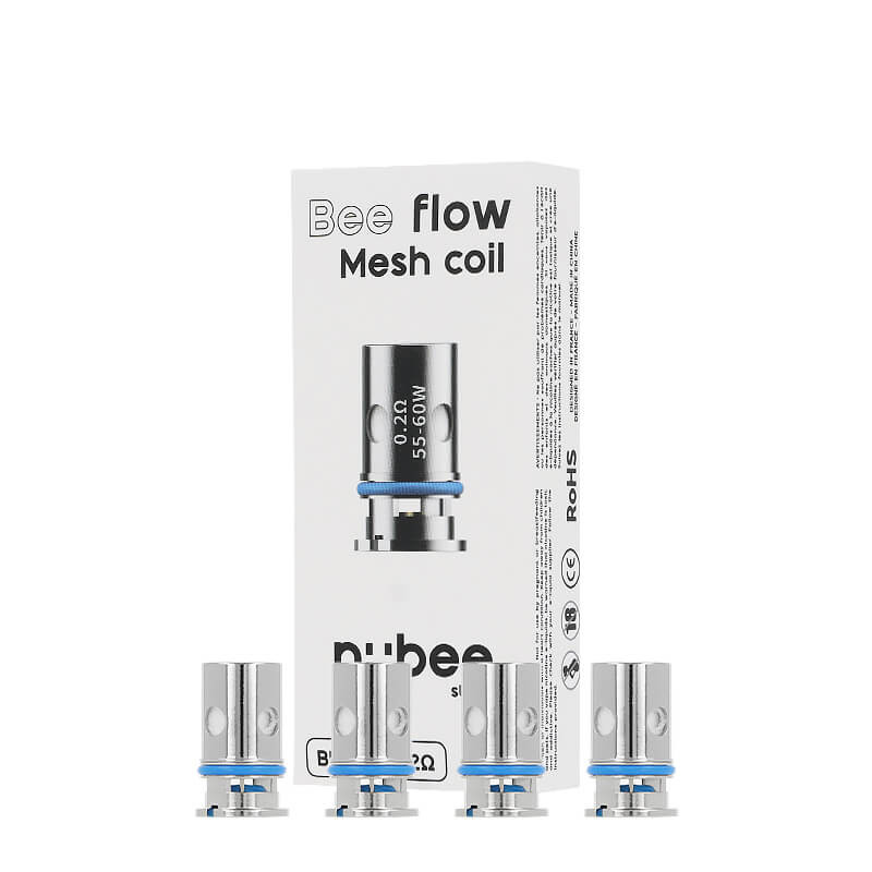 - Set of 4 Bee Flow 0.20ohm coils: a good balance between power and flavor delivery, for an airy draw in direct (DL) or restricted direct (RDL) vaping, to be used between 55 and 60W. Opt for e-liquids with a VG content not exceeding 60%