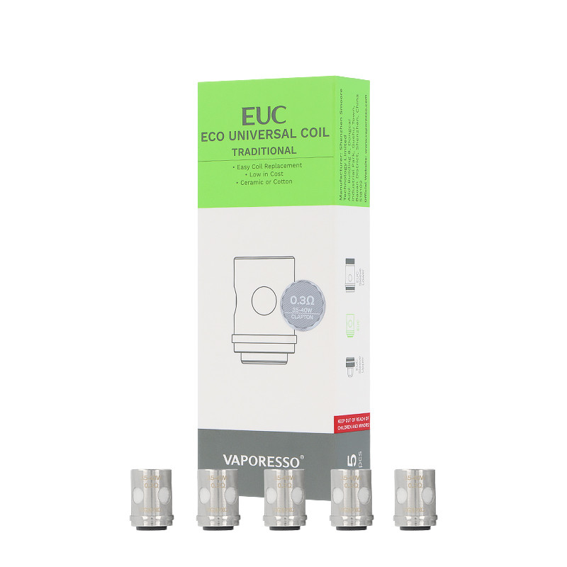 Note that the EUC coils of Vaporesso are compatible with the Veco Tank and Veco Plus clearomizers for electronic cigarettes.