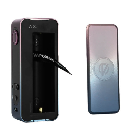 Vaporesso made the choice to supply its kit with an 18650 battery (not included). You only need to lift the magnetic compartment door to insert your battery while respecting the polarity indication located on the back.