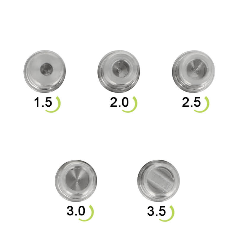 Thanks to a single coil deck with two posts, it can hold your coils with a maximum diameter of 3mm. You'll receive it with 5 airflow pins going from 1.5mm for a tight vape (MTL) to 3.5mm (pre-installed) for an airy vape (DL).