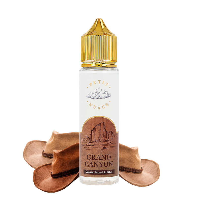 The Grand Canyon is a shortfill e-liquid in a 50ml format of the Petit Nuage collection by Levest. It offers flavors of blond and dark tobacco, in a recipe made in France.