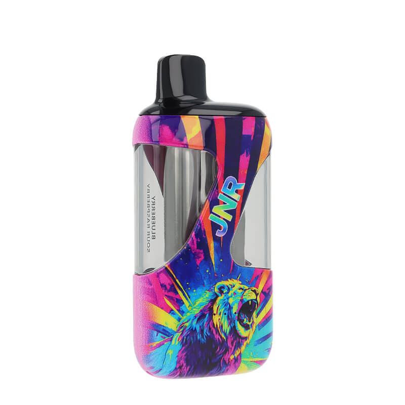 This JNR e-cigarette features a dual tank system with 10ml tanks, allowing you to switch between two e-liquids: Blueberry Pomegranate Ice or Blueberry Sour Raspberry, made with 20mg/ml nicotine salts.
