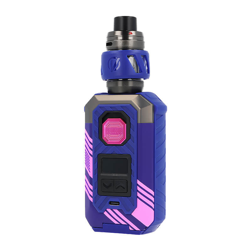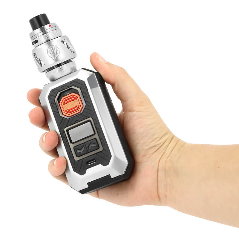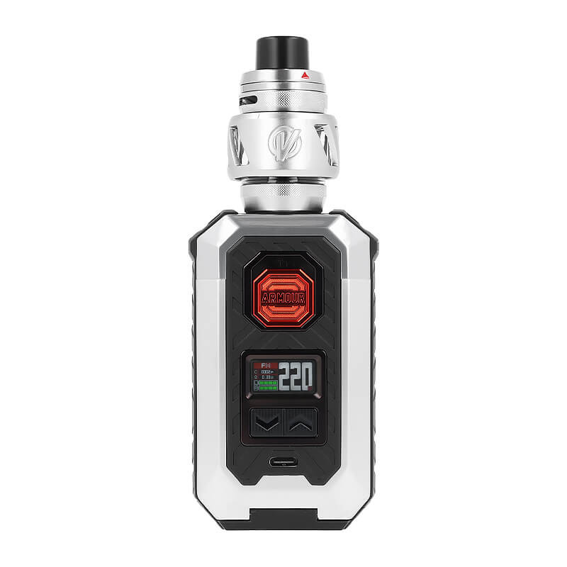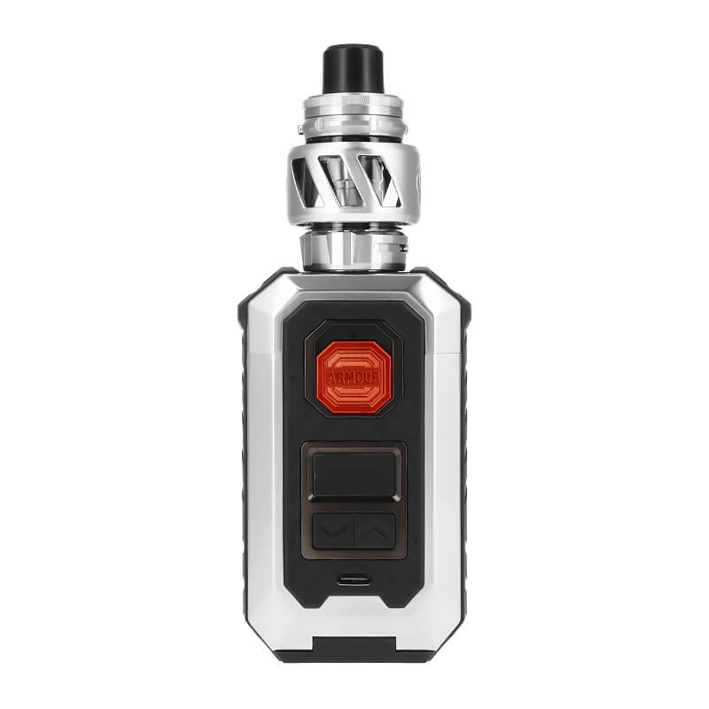 Dans ce kit, la box Armour Max embarque le clearomiseur iTank T, pour une vape nuageuse en inhalation directe (DL). L'ensemble offre une cigarette électronique cossue et notamment résistante à la poussière.