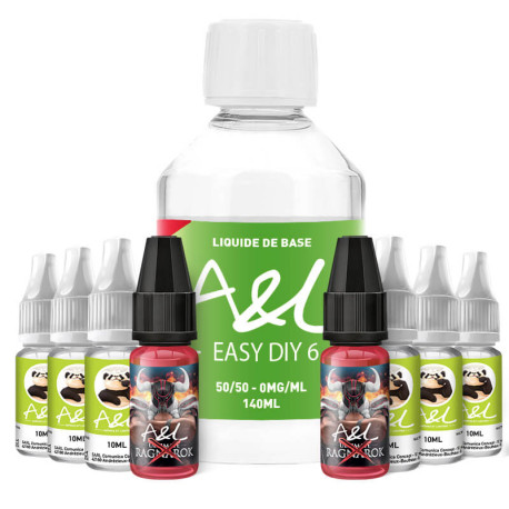 A&L vous accompagne dans votre initiation au DIY, grâce à ce pack tout-en-un, comprenant tous les ingrédients nécessaires à la préparation de 200ml de e-liquide frais et fruité.