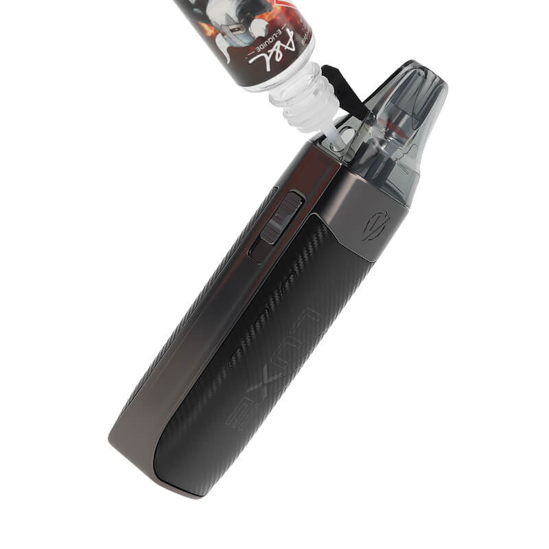 Pour le remplissage de votre cartouche Luxe X Dual Mesh, Vaporesso a opté pour un système latéral sans avoir besoin de retirer la cartouche du socle de votre pod.